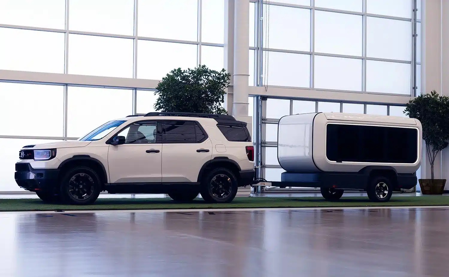 El tamaño importa. Y el peso, más. La Base Station nace con la obsesión de ser remolque compacto y garageable. La conversación gira alrededor de SUVs medianos, de ese parque enorme que no quiere cambiar de coche para salir. En ese marco aparece el Honda CR-V como referencia natural: 1.500 libras de capacidad, margen justo, distribución de masas cuidada. También el Honda Prologue, con la pregunta inevitable sobre autonomía al arrastrar.