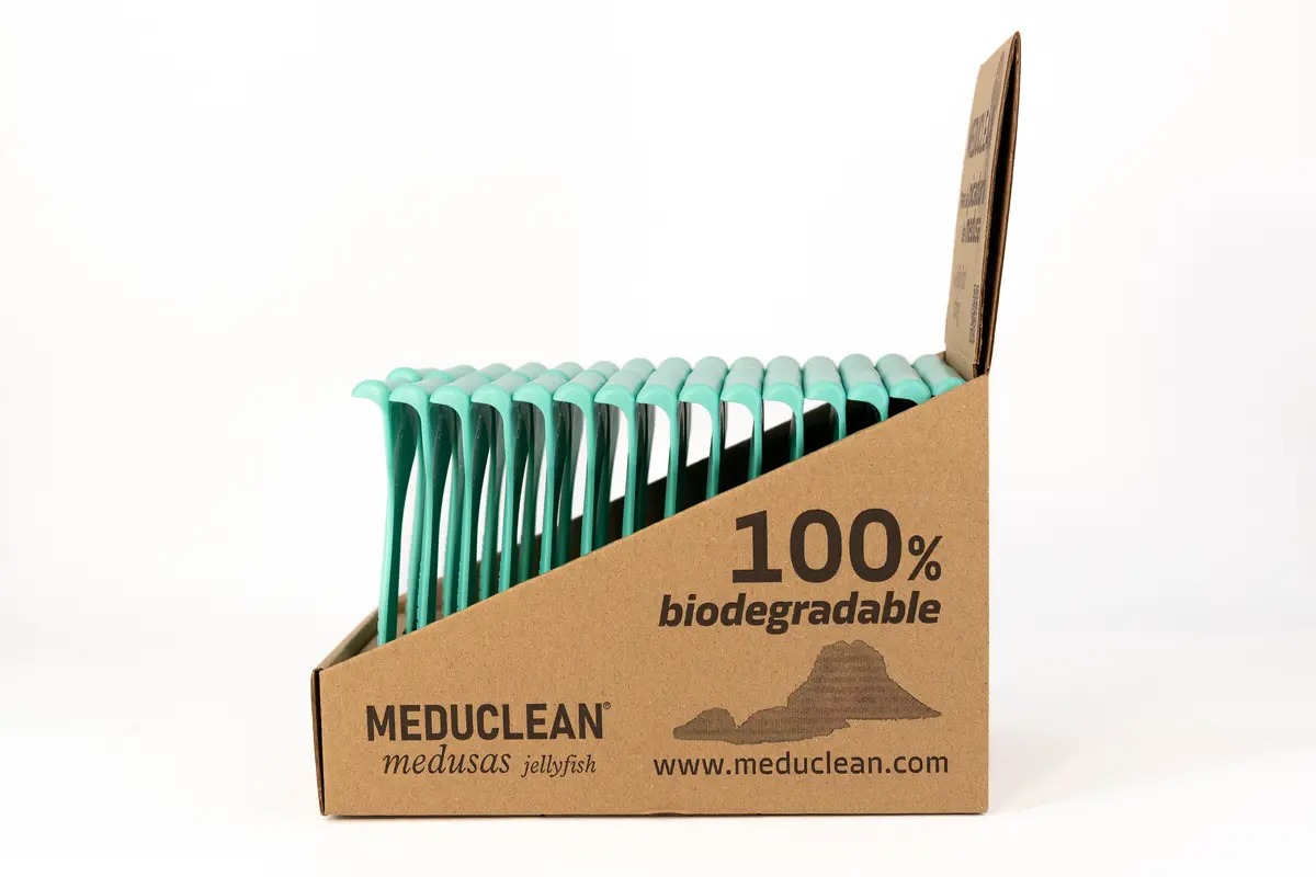 Meduclean comercializa una espátula, un rascador diseñado con una función muy concreta: despegar los restos adheridos a la piel sin romperlos ni dispersarlos. Reutilizable. Pensado para llevar encima. Para usarlo en la arena, con sal en los pies y prisas alrededor.